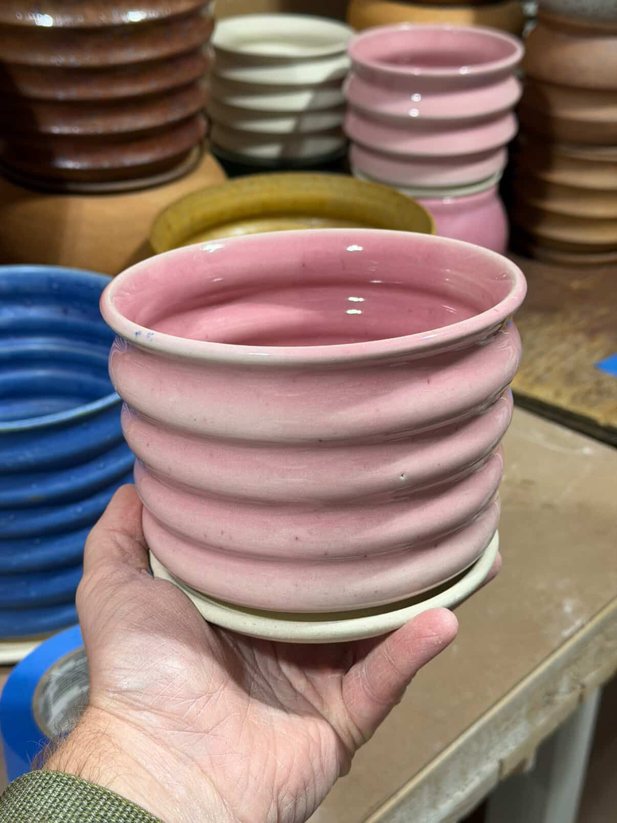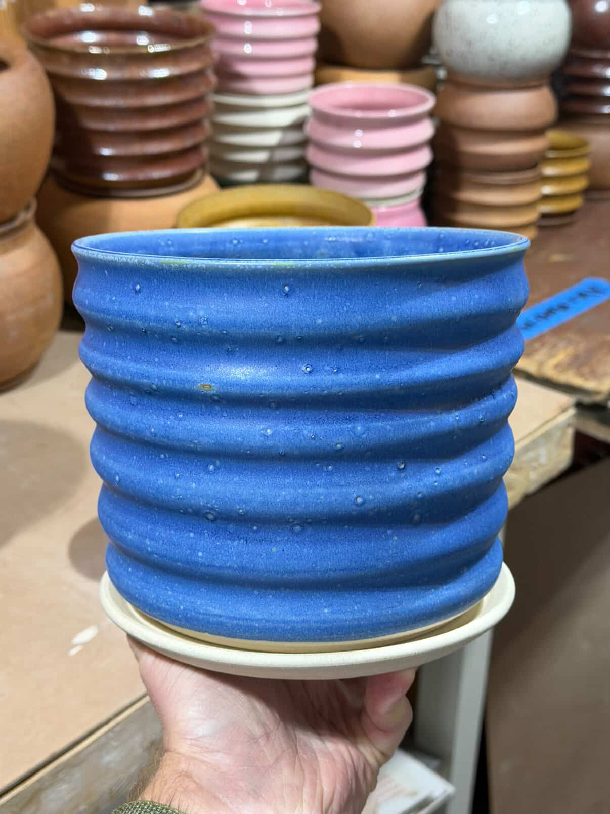Made by Ceramax in Portland, OR. Each piece is made by hand! No molds or forms means each piece will be a bit different. Clay coloration is subject to fluctuation depending on each firing and mix of clay.